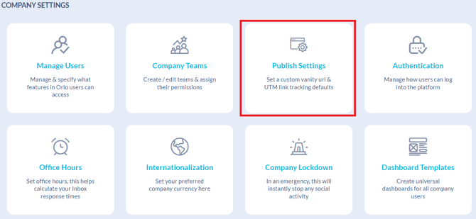 Access Publish Settings: Locate the Company Settings section on the left-hand sidebar and click Publish Settings.